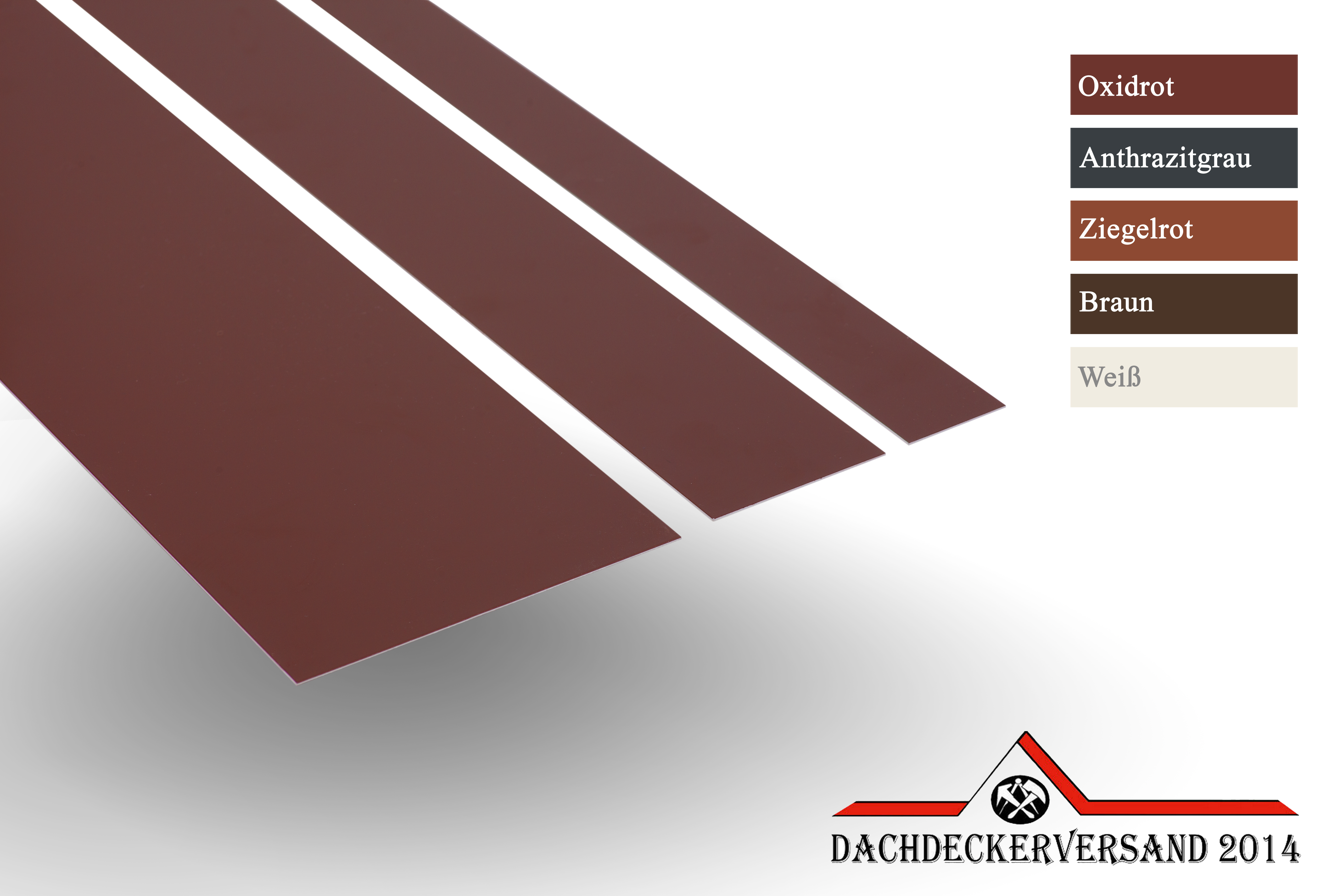 - Material: Aluminium farbig 0,8 mm stark - anthrazit (RAL 7016), oxidrot (RAL 3009), ziegelrot (RAL8004), weiß (RAL 9010), braun (RAL 8014)