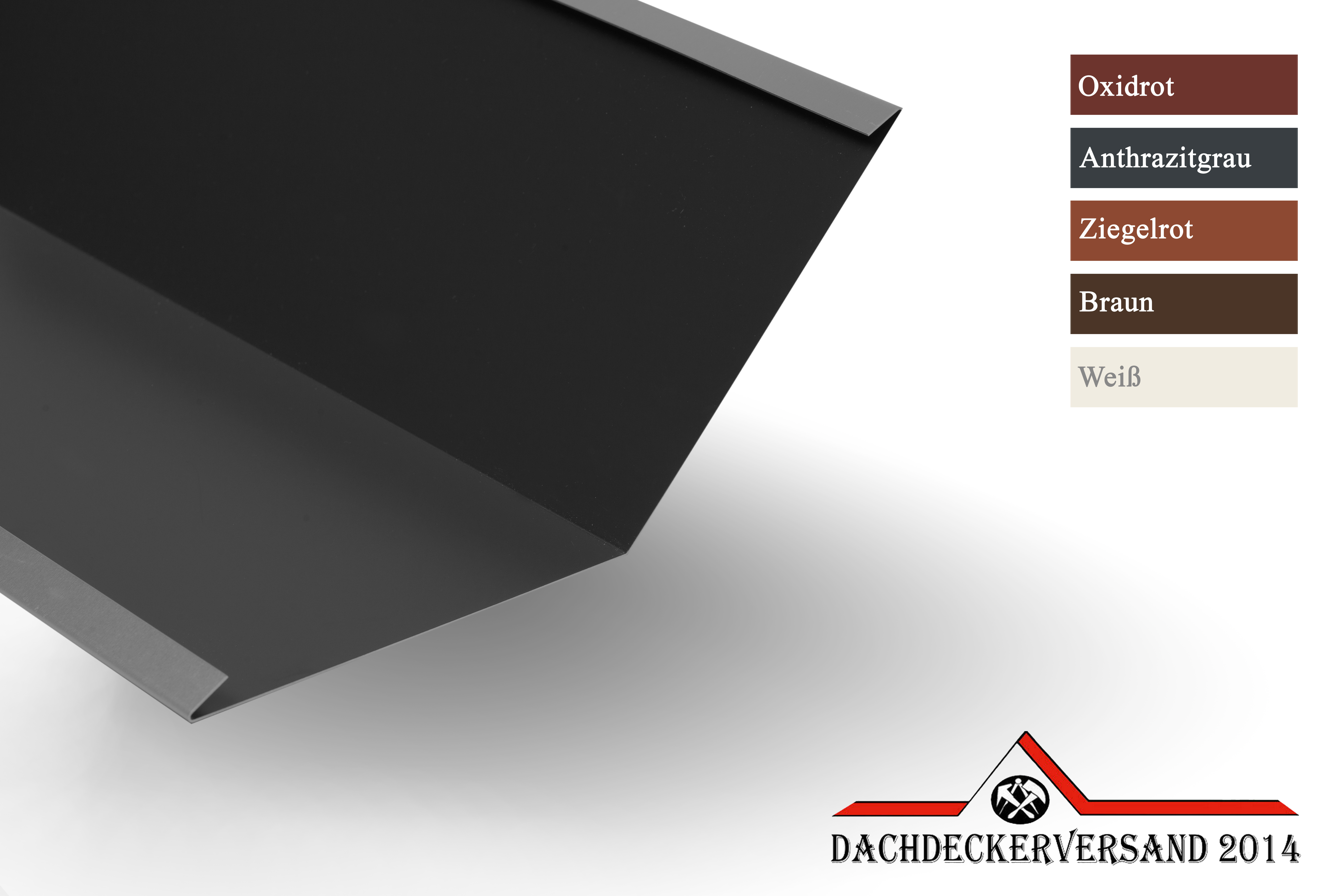 - Material: Aluminium farbbeschichtet 0,8 mm stark - anthrazit (RAL 7016), oxidrot (RAL 3009), ziegelrot (RAL8004), weiß (RAL 9010), braun (RAL 8014)