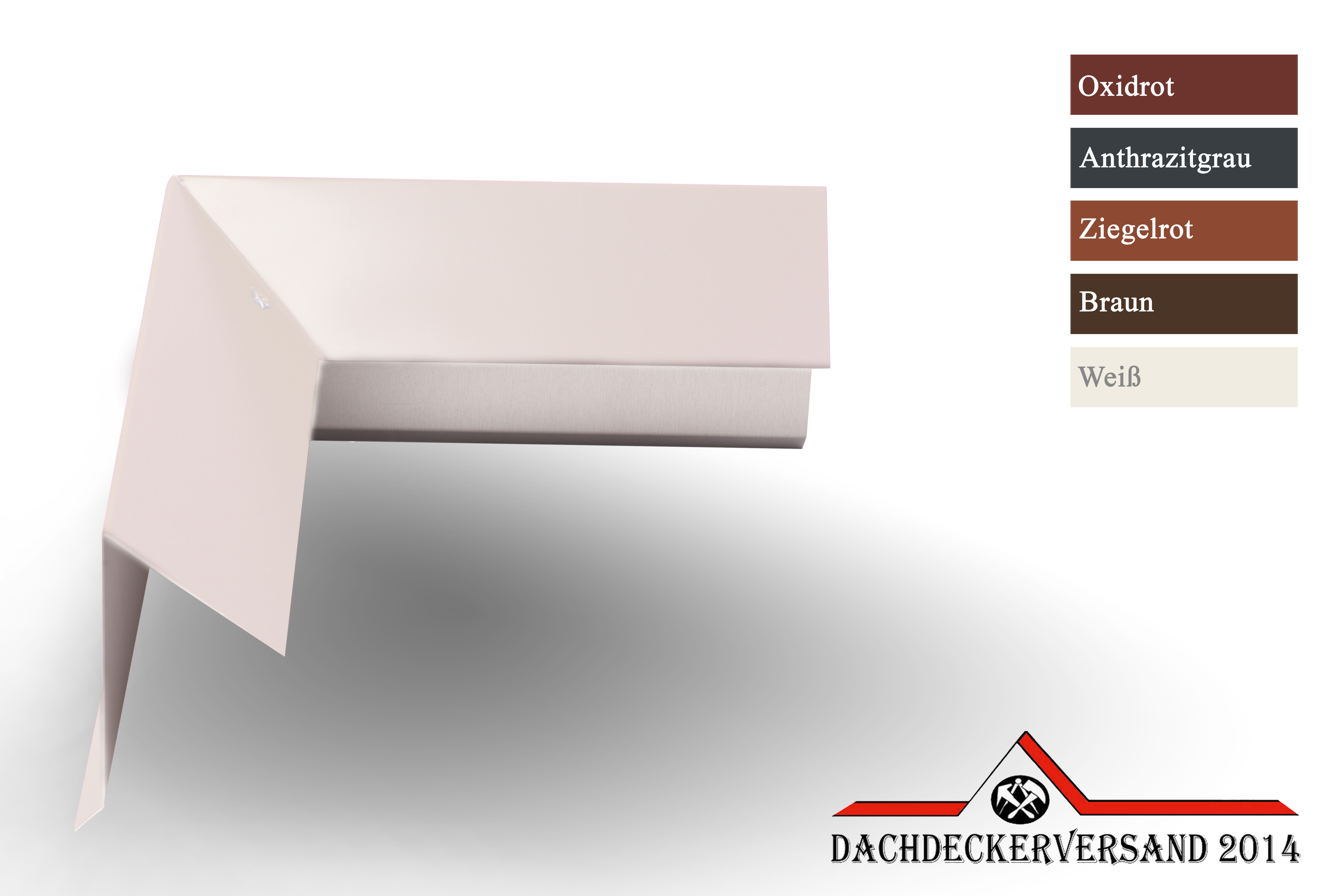 - Material: Aluminium farbbeschichtet 0,8 mm stark - anthrazit (RAL 7016), oxidrot (RAL 3009), ziegelrot (RAL8004), weiß (RAL 9010), braun (RAL 8014)