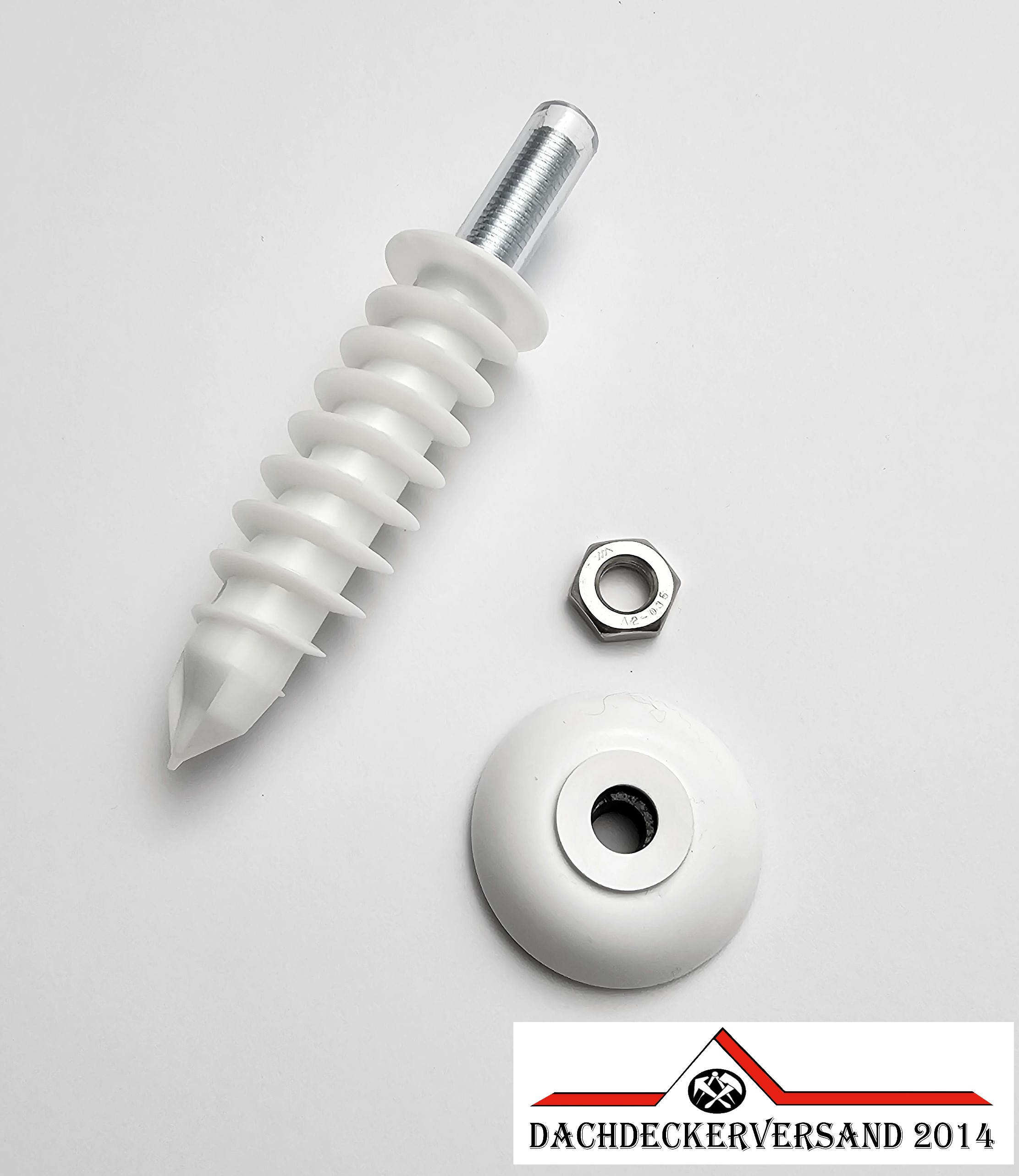 Bei der Montage darf der Akkuschrauber nicht auf Bohrstufe eingestellt sein. Es muss ein geeignetes Drehmoment gewählt werden. Für die Verankerung in Holzfaserdämmplatten ist die Platte mit einem 16 mm Bohrer vorzubohren. Achten Sie auf eine sorgfältige Verarbeitung um den Verankerungsgrund nicht aufzureiben oder das Befestigungselement zu beschädigen.