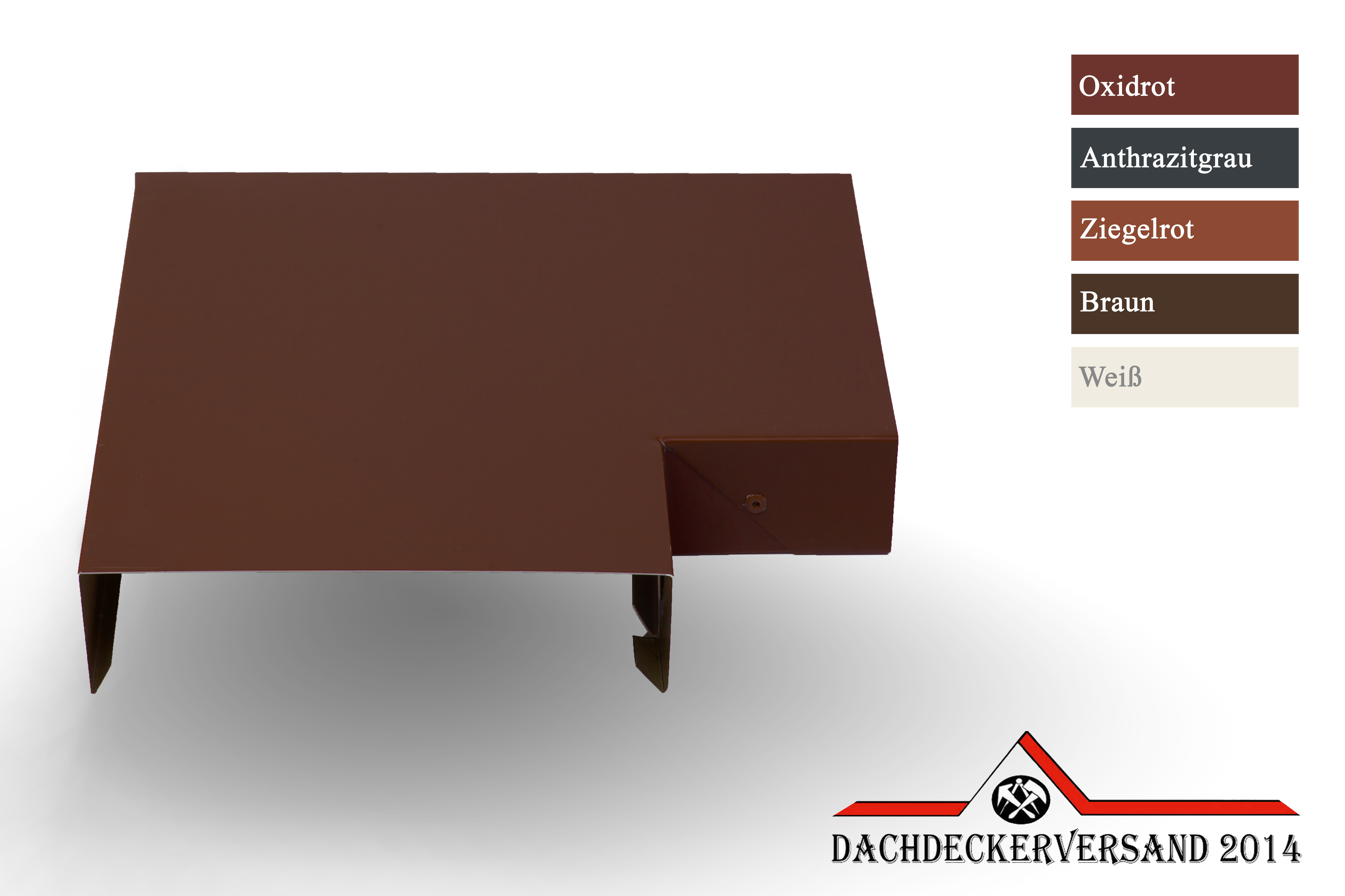 - Material: Aluminium farbbeschichtet 0,8 mm stark - einseitig farbig, farbige Seite außen - anthrazit (RAL 7016), oxidrot (RAL 3009), ziegelrot (RAL8004), weiß (RAL 9010), braun (RAL 8014)