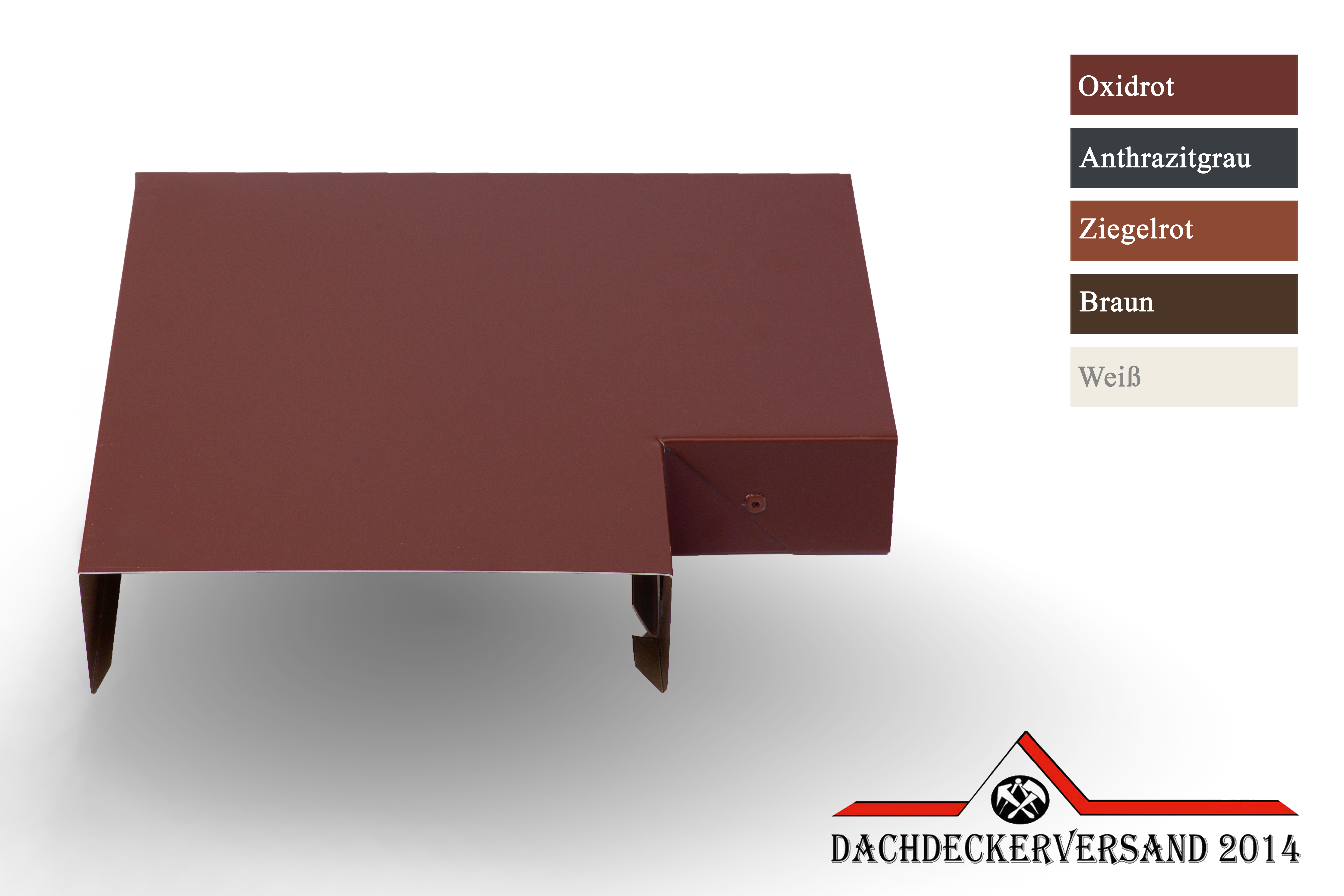 - Material: Aluminium farbbeschichtet 0,8 mm stark - einseitig farbig, farbige Seite außen - anthrazit (RAL 7016), oxidrot (RAL 3009), ziegelrot (RAL8004), weiß (RAL 9010), braun (RAL 8014)