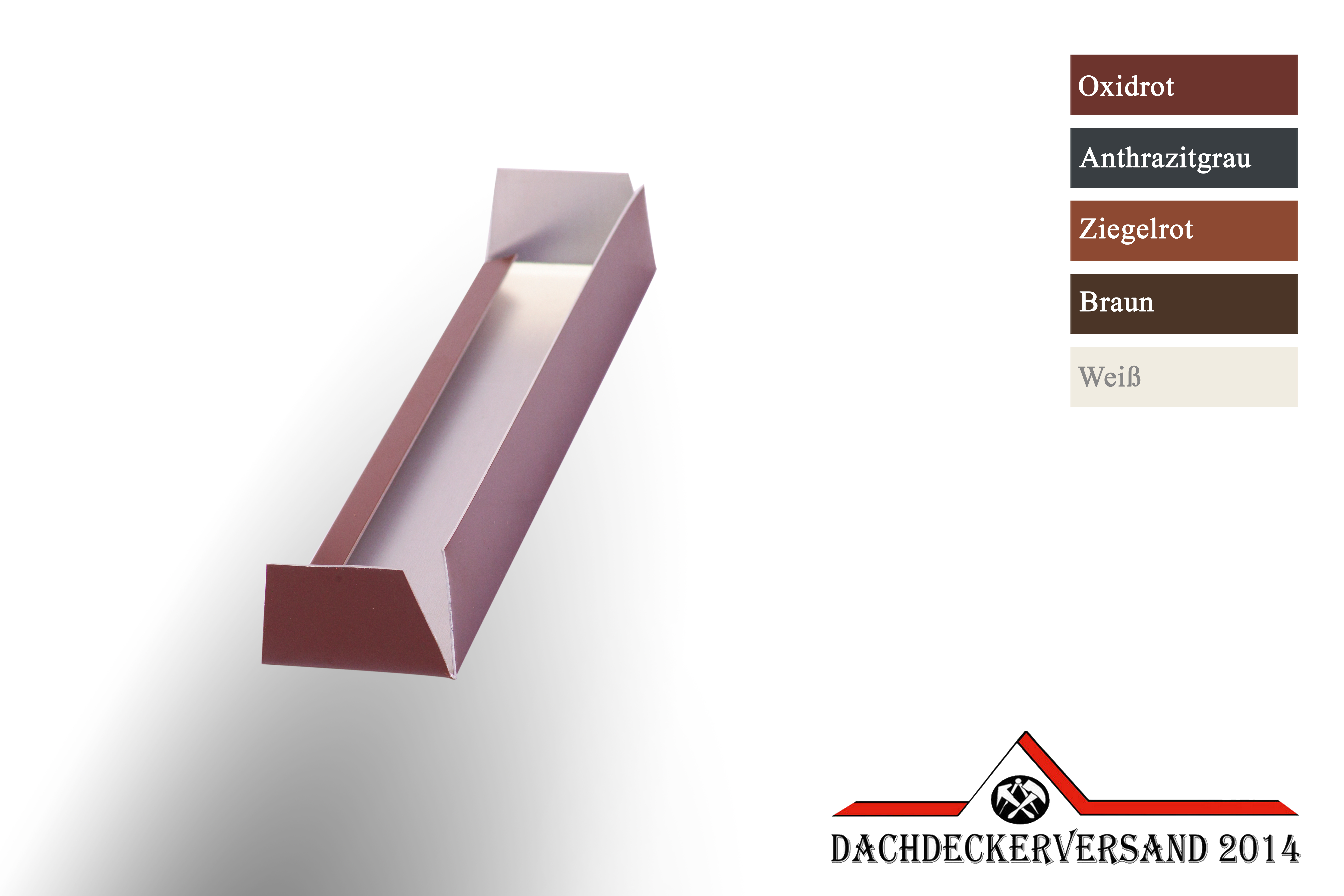 - Material: Aluminium farbbeschichtet 0,8 mm stark - einseitig farbig, farbige Seite außen - anthrazit (RAL 7016), oxidrot (RAL 3009), ziegelrot (RAL8004), weiß (RAL 9010), braun (RAL 8014)