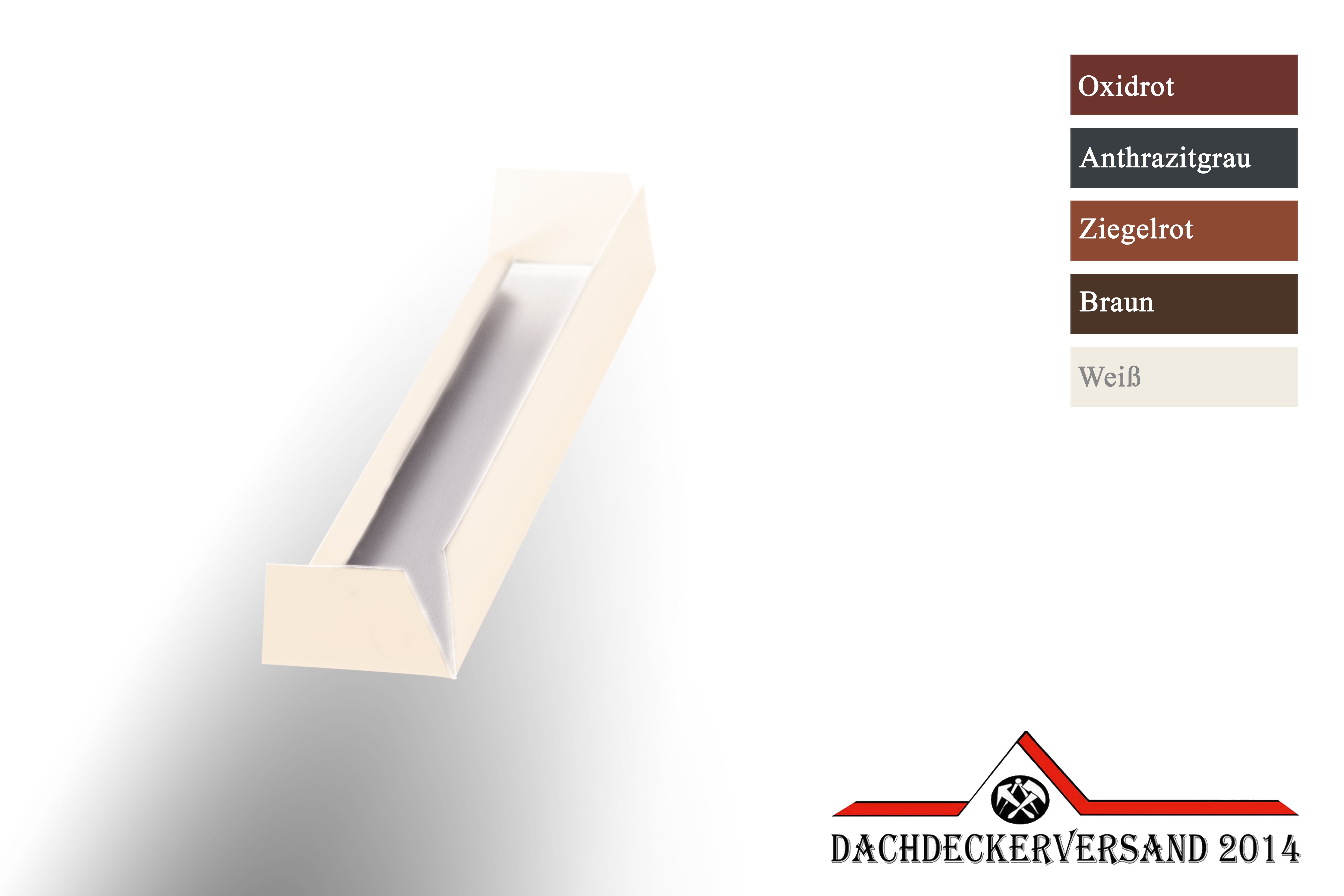- Material: Aluminium farbbeschichtet 0,8 mm stark - einseitig farbig, farbige Seite außen - anthrazit (RAL 7016), oxidrot (RAL 3009), ziegelrot (RAL8004), weiß (RAL 9010), braun (RAL 8014)